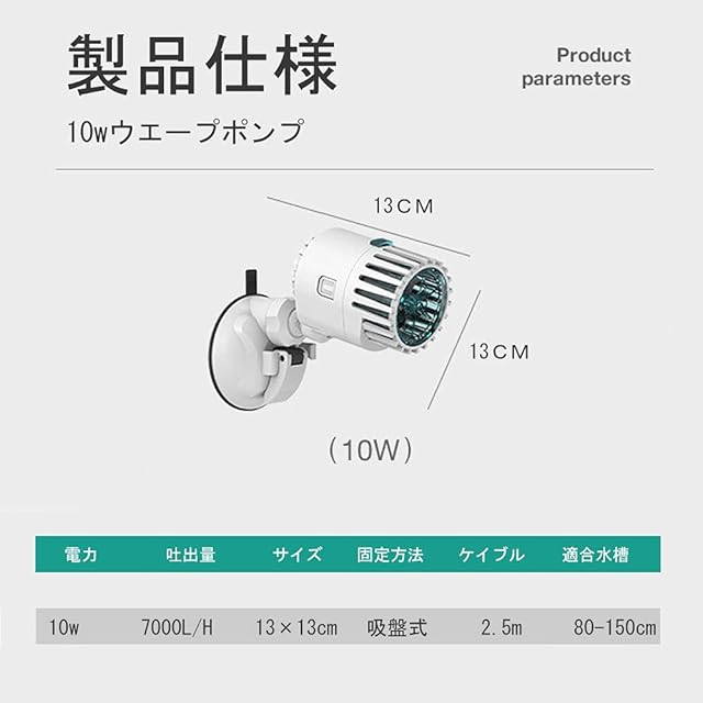 【規格】☆入力電圧:AC 100V 50/60Hz ☆電力:10W ☆最大流量:7000L/H ☆騒音クラス:35デシベル以下 ☆電源コードの長さ:2.5M ☆適用水槽:80-120CM