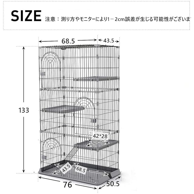 【商品説明】:コンパクトサイズで子猫にも最適なミニキャットケージです。各段に扉付で、 掃除の時やペットを取り出すのに便利です。 大きな扉でお掃除や物の出し入れがラクに行えます。 猫がゆっくりくつろげる大きめの丈夫な棚板が2枚付いています。