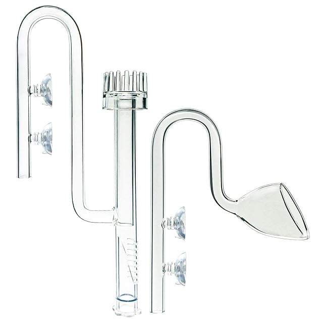 クリアガラス製の水槽用ポピー型出水用パイプと吸水用パイプのセット商品です。