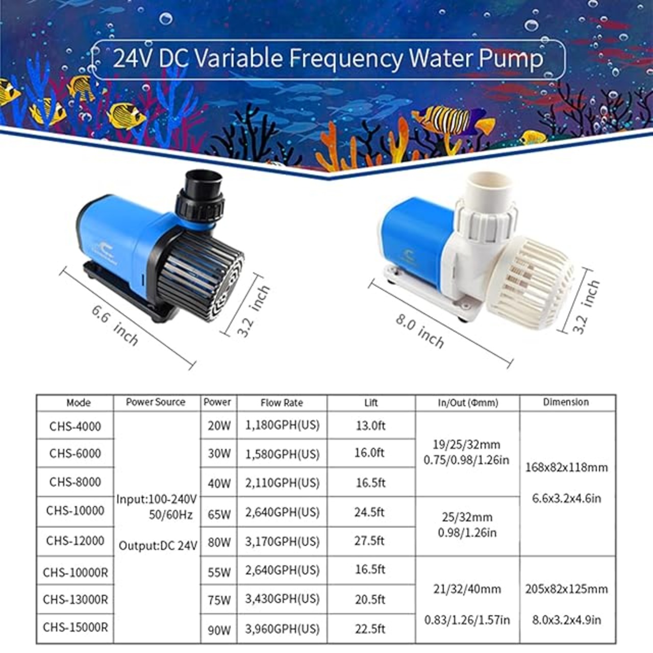 CONQUERALL 1580GPH 30W 16.0ft DC 制御可能なポンプ CHS-6000 耐久ポンプ波水中とインライン海洋サンゴ礁タンク サンプ循環用