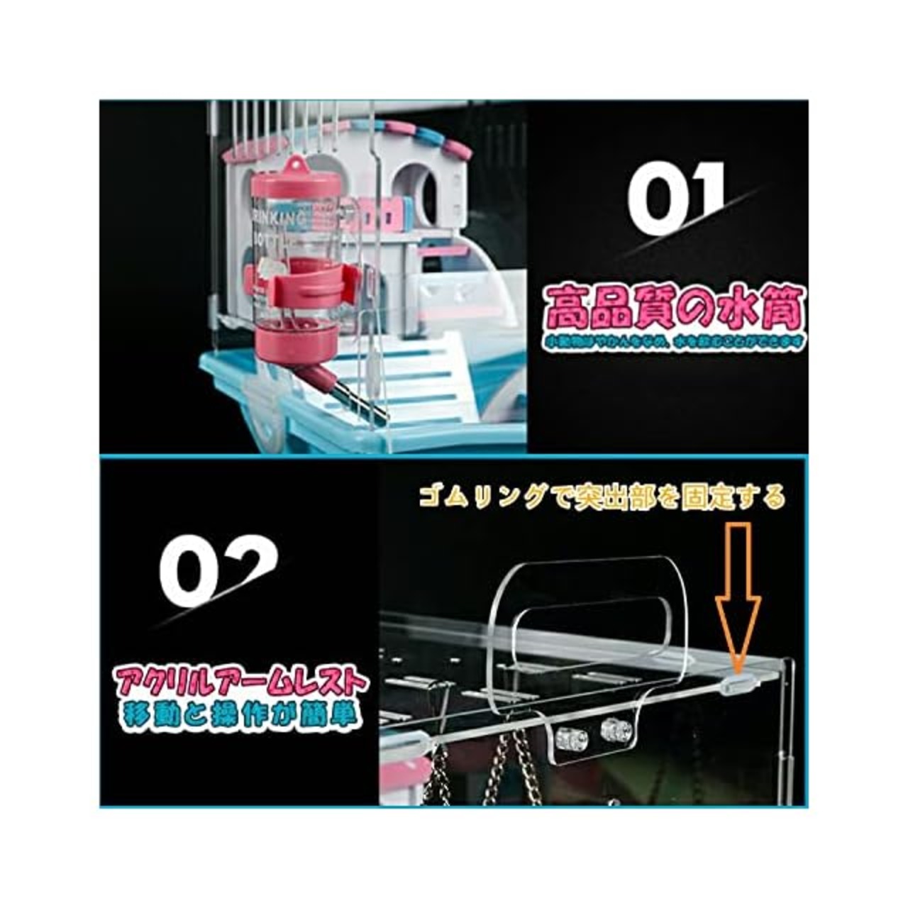 JKOOK ハムスターケージ 透明 よく見える アクリル製 小動物 給水ボトルなど含めて9点セット 組立式 持ち運びやすい トレーデザイン お掃除しやすい 通気穴いっぱい 小動物用ケージ 2階デザイン フクロモモンガ ケージ トレーデザイン 組立動画 説明書あり(ピンク)