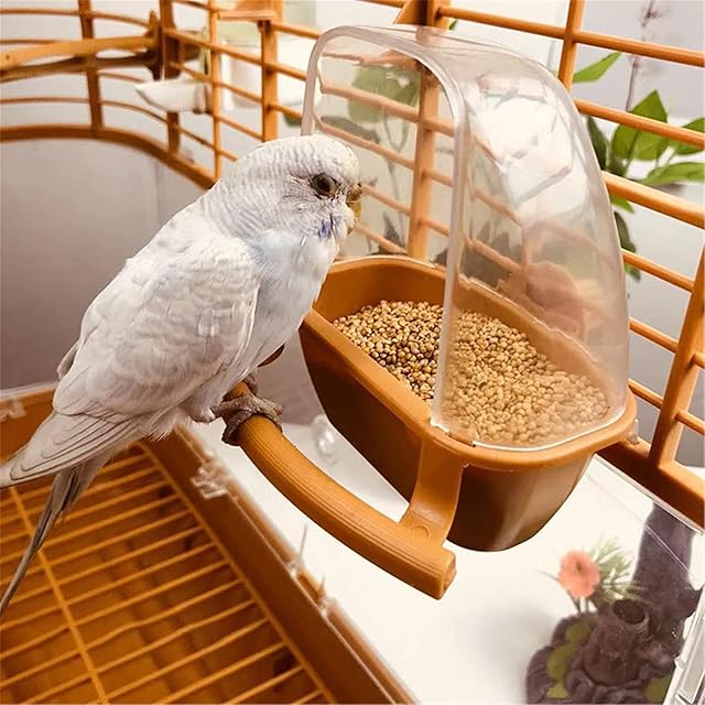 鳥たちが止まり木に立って、快適に食事することができます。透明のカバーに穴が開いています。穴から餌を簡単に補充できます。