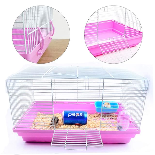 Gifty ハムスターケージ ウサギ 小動物用 お出かけ キャリー 飼育セット付き ゴールデン ジャンガリアン ケージ 深底 軽量 大型<br><br> ●初めてのはりねずみ飼育に最適のケージです。ウォーターボトル、エサ入れなど飼育に必須アイテムがギュっとつまったスターターセット!<br><br> ●軽量でコンパクト、使いやすいケージです。ジャンガリアンなどのドワーフハムスターちゃんにほどよい大きさです。<br><br> ●底が9cm深めのトレータイプのケージなので、ケージ周りが汚れにくくなります。ハリネズミが快適にすごせる最適サイズの飼育ケージ。<br><br> ●ケージの隙間(ワイヤーとワイヤーの間)約15㎜の細かいワイヤーピッチなので、子どものハリネズミやモルモットも逃げにくい仕様です。<br><br> ●正面は大きなアミのドアになっているので、お世話もしやすく、ペットや餌の出し入れがしやすいシンプル設計です。ハムちゃん、ハリネズミのベビーちゃんなどに。<br><br> ●中が見やすい金網ボディと大きな扉で、ハムスターの寝ている姿もくつろいでいる姿も観察できます。通気性も良いです。<br><br> ●ケージ上部の左右の両端に取っ手が付いていて、持ち運びに便利です。生き物との距離が、グッと近づく飼育ケースです。<br><br> ●スッキリと隅々まで楽にお掃除!ケージ本体と底トレイは簡単に取り外せるので、組立てや分離もカンタンにでき、床材の交換などケージのお手入れが楽々!<br><br> ●サイレントホイール、ハウス、砂浴び場、おもちゃ、床材などのアイテムをお好みで揃えて色々な拡張も楽しめます!自由自在にレイアウト!<br><br> 【商品仕様】<br><br> ●サイズ(約):幅470x奥行300x高さ300mm<br><br> ●重量(約):1.65kg<br><br> ●材質:スチール、PP<br><br> ●セット内容:ケージ本体、80cc給水ボトル、エサ入れ<br><br> ●ドア数:1個 ●ドア位置:前面 ●ドア開け方:上下(横195x縦150mm) ●ワイヤー間隔:左右約10mm ●適用:ドワーフハムスター、ゴールデンハムスター、シリアンハムスターなどのハムスター類、チンチラ、モルモット、モモンガ、フェレット、ハリネズミ、リス、ネザーランドドワーフなど小動物<br><br> ●生産国:中国<br><br> ※本品に床スノコは付属しておりません。