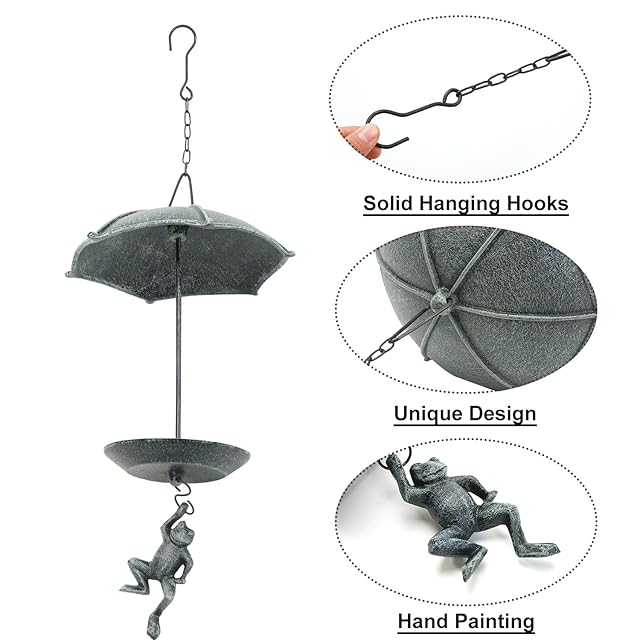 <br>丈夫な鋳鉄で作られ、優れた耐久性がある。爽やかな緑色。上に屋根が付き、鳥の休憩所にもなる。<br><br>カエルの飾りで活気でかわいい。簡単に組み立てるデザイン。早めに野鳥観察に楽しめる。<br><br>ナッツ、草の種、キビ、米またはパンなどの鳥の餌にピッタリ。<br><br>野鳥観察好きの方に絶対喜ばせる一品、友達、子供、大切な人へのベストプレゼントとなる。<br><br>サイズ:21 * 21 * 64.5cm / 8.3 * 8.3 * 25.4inch<br>