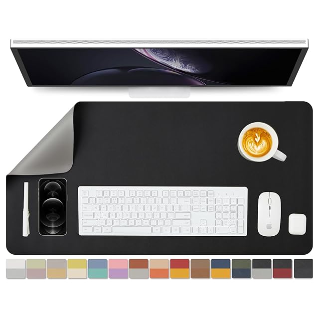 両面デザイン:高品質なPU製のデスクマットは、2色のスタイリッシュなデザインで、ワークスペースに合わせて切り替えることができます。