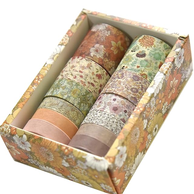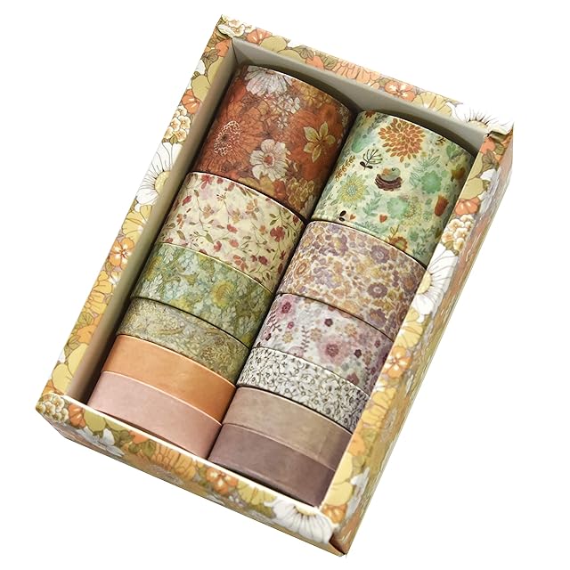 3cm幅×2巻,2cm幅×2巻,1.5cm幅×2巻,1cm幅×6巻の合計12巻入っています。長さは全て3メートル。海外製(中国)のマスキングテープセット。