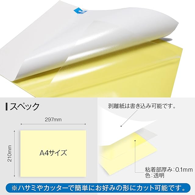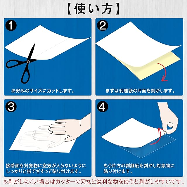 透明な接着シートなので透き通ったガラス・アクリル・フィルムなどを接着しても、貼りあとが目立ちにくい。
