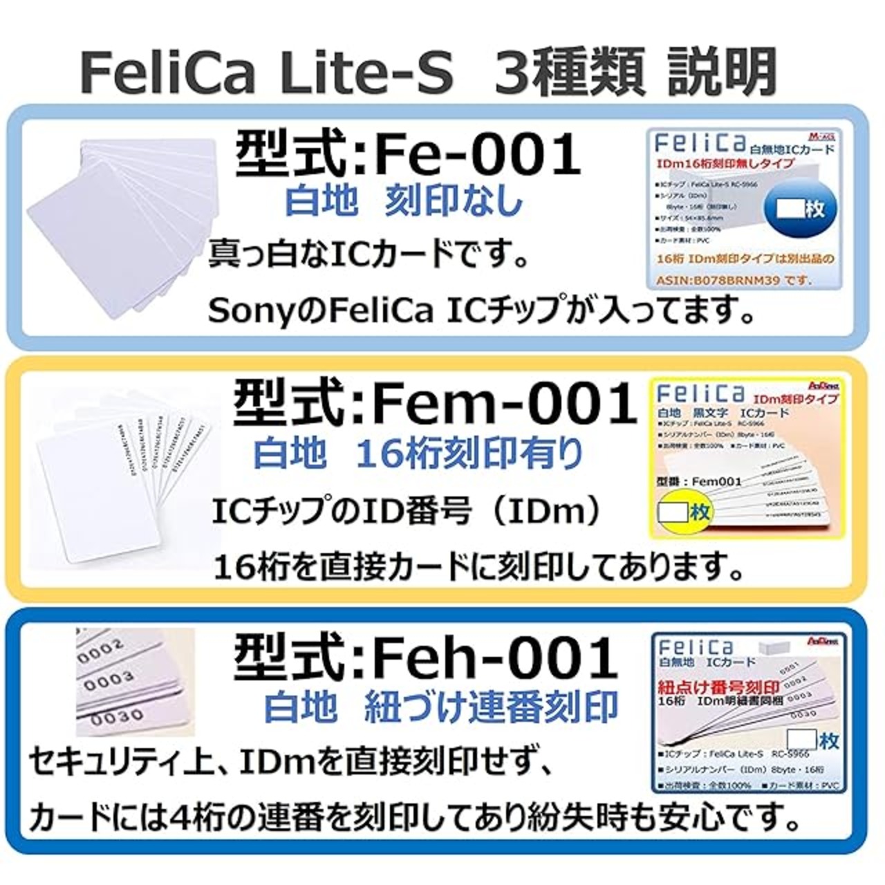 Fem-001【100枚 IDm16桁 刻印 開示※】FeliCa Lite-S RC-S966 ビジネス(業務、e-TAX)用 フェリカライトエス PVC