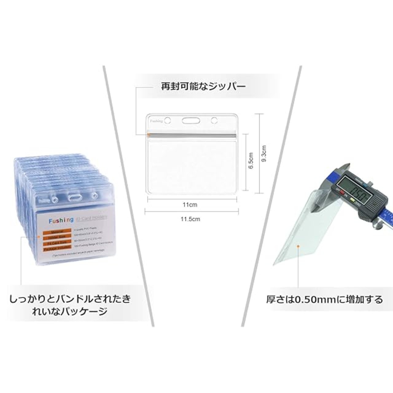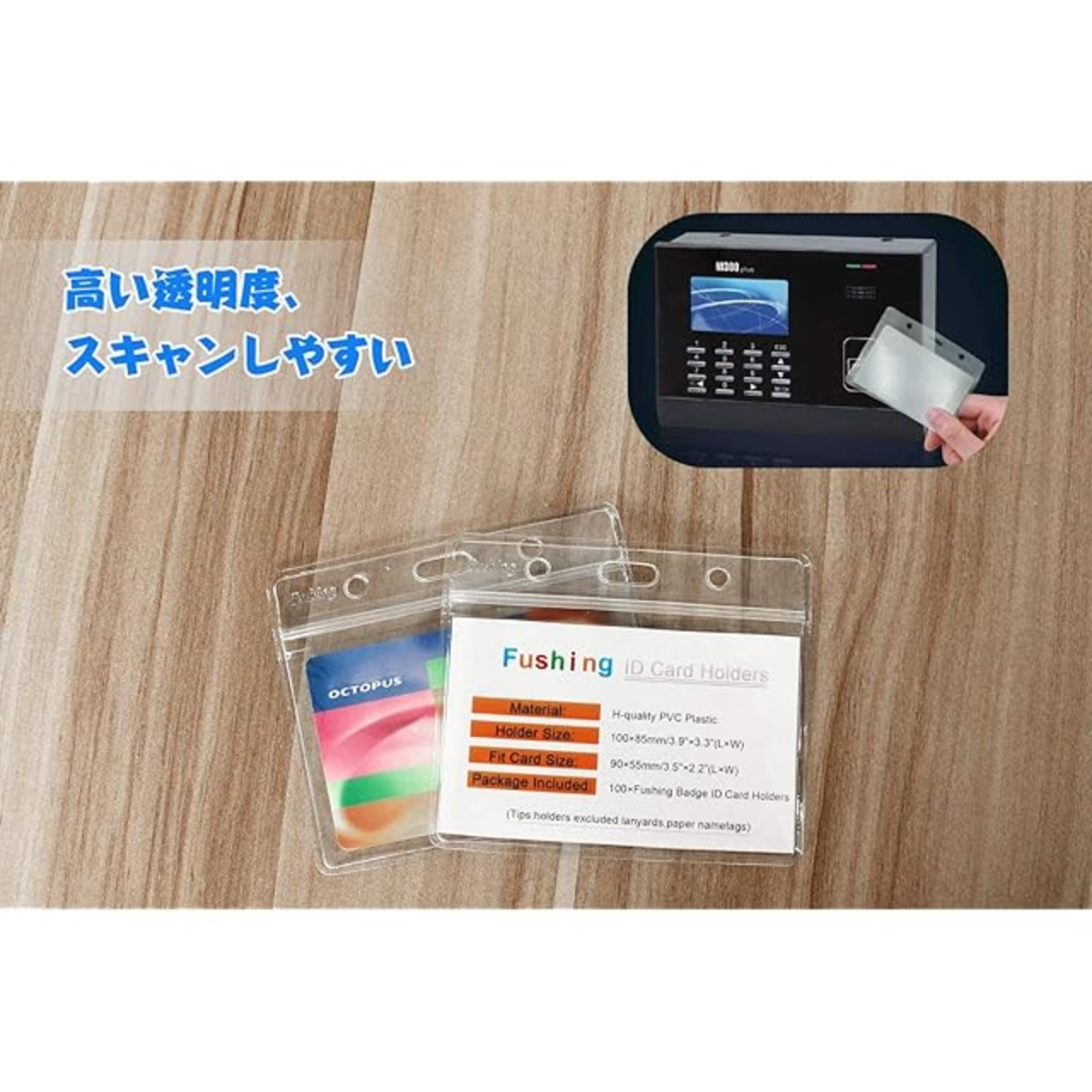 Fushing 50個 クリアネーム 名札IDカードホルダーケース バッジ防水セットプラスティック製 社員証 横型 透明色 (11.5*9.3cm)