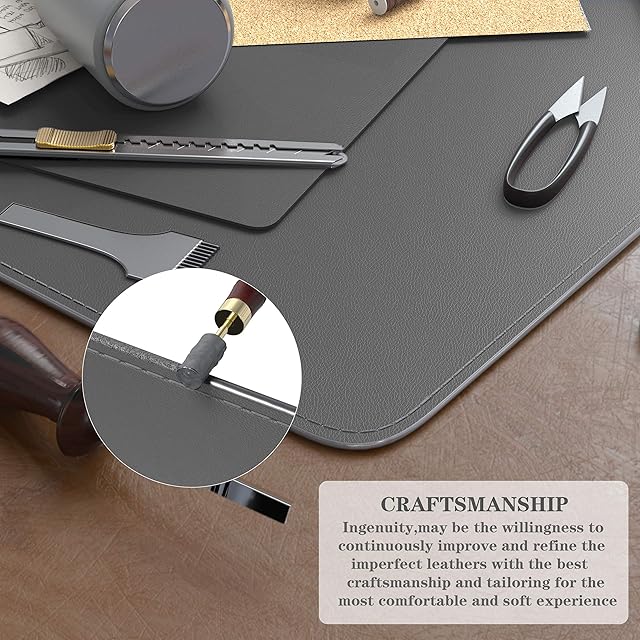 両面使用: 植物ベースの環境に優しいコルクと高品質のPU(ポリウレタン)レザーを組み合わせたユニークなブレンド。 両面使用可能。2 in 1デスクパッド。裏返して使えます。