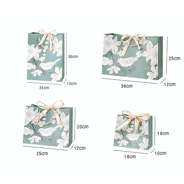 【サイズ別四枚セット】サイズ1は高30cm*マチ13cm*横24cm、サイズ2は高25cm*マチ12cm*横36cm、サイズ3は高20cm*マチ12cm*横25cm、サイズ4は高16cm*マチ10cm*横18cm。メッセージカード4枚付き。