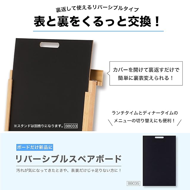 転倒防止リバーシブルボード(BB033)のスペアボードとしてご使用可能ですが、単体でもご使用いただけます。イーゼルや壁に立てかけてご使用ください。
