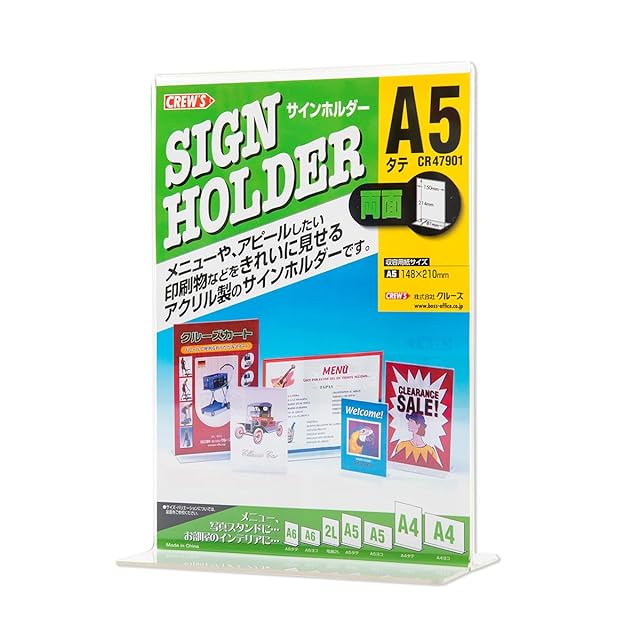 案内板として、メニューやアピールしたい印刷物などをきれいに見せるアクリル製のサインホルダーです。