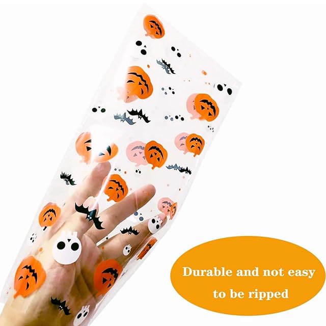 Ouiifan 100pcs感謝祭バッグ ラッピング袋 大容量小分け袋 13*27cm ギフトバッグ diy用カエデの葉プラスチックバッグ かぼちゃ袋 秋テーマオレンジバッグ 小物収納 感謝の日 ハロウィン クリスマス 4つパターン ゴールドのケーブルタイ付き (Halloween Bags-120)