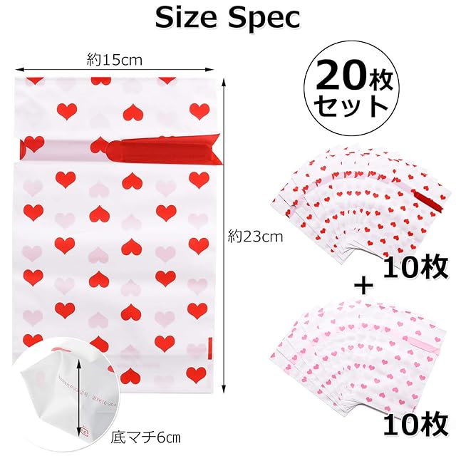 ラッピング 袋 【 マチ付き 巾着袋 20枚セット(23×14×マチ6cm) 】 プレゼント 包装紙 ( 誕生日 プチ ギフト に 人気 の ラッピング袋 ) リボン付き 手提げ 巾着( ハロウィン クリスマス プレゼント用 )【Relema】 (ハート) | HiKaRiストア