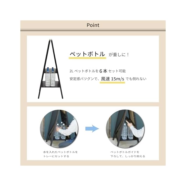 2リットルのペットボトルを4本設置可能で、追加の重し対策が不要です