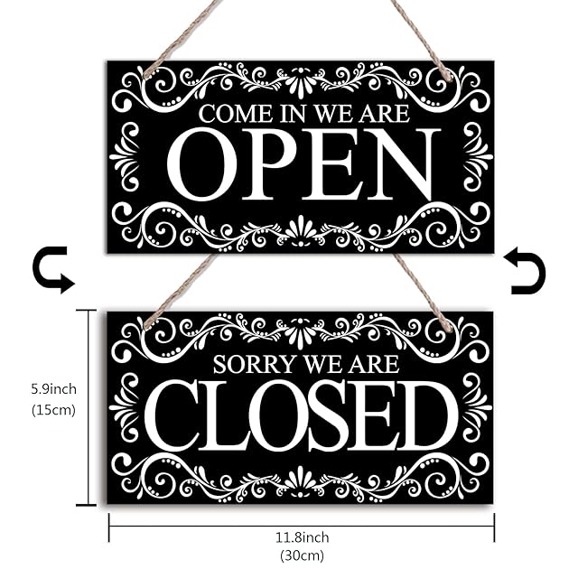 【デザイン】両面デザインの看板で、表にOPEN、裏にCLOSEDと書いて、両面で使用できます。ブラックのデザインもレトロで穏やかな雰囲気が溢れます。お店をおしゃれになれます。