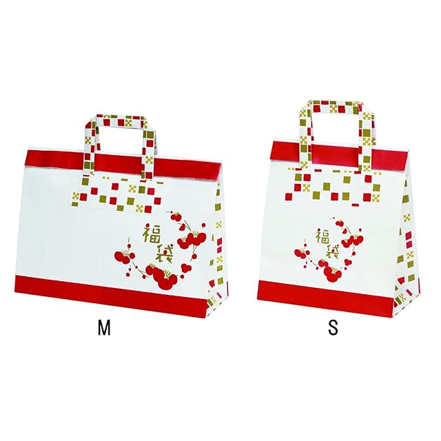 パックタケヤマ 紙袋 平紐 手提 フォールドバッグ 福うめ S 50枚 XZV69991