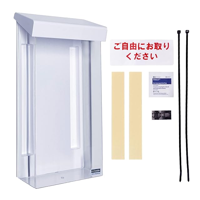 付属品:結束バンド2本、マウントベース2個、両面テープ2枚、クリーニングウェットティッシュ1個、「ご自由にお取りください」シール1枚
