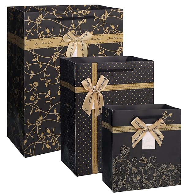 Aumesa Rano 3枚セット ギフトバッグ プレゼント用 ラッピング袋 紙袋 手提げ袋 ラッピング 誕生日 結婚式 ギフト包装 バレンタイン おしゃれ リサイクル可能 手提袋 贈り物 3サイズ | HiKaRiストア