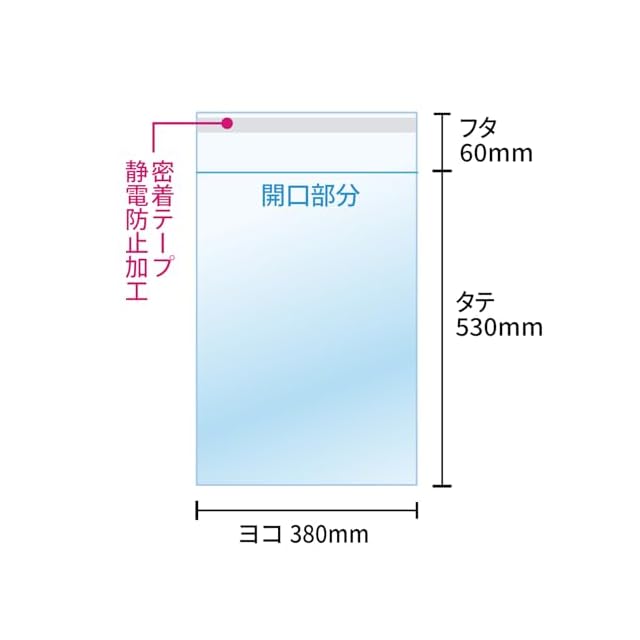 <br> ■B3用OPP袋(透明封筒)とは? <br> 透明度が高いOPP袋です。高品質な国産品で、しっかり中身を守る美しい透明袋です。 <br> ダイレクトメールやB3サイズのカレンダーなどを封入しやすい大きさです。 <br> 開封しなくても、中身が隅々まで美しく見えるから、受け取る相手に安心感を与えます。 <br> <br> ■OPPフィルムとは? <br> 滑らかで上品な光沢があるフィルムです。パリッとしたハリのある質感で、封入物を美しくコーティングします。 <br> 水や湿気に強いので、屋外での急な悪天候や、長期保存の湿気にも強いのが特徴です。 <br> 焼却してもダイオキシン等の有毒ガスが発生しない、環境に優しい素材です。 <br> <br> ■商品詳細 <br> ・ヨコ380×タテ530+フタ60mmの大きめな透明封筒です。 <br> ・静電気防止加工を施し、フタ部分に密着テープ付なのでワンタッチでとめることができます。 <br> ・たっぷり使える100枚セット。業務用にもオススメな、国産・高品質な商品です。 <br> <br> ■こんな場面にオススメです <br> ・広告やカタログの封入に <br> ・洋服の整理や衣類小物の整理に <br> ・フリーマーケットやネットオークションの商品包装に <br><br>※密着テープは接着後、2,3日ではがれにくくなります。粘着力が強いため、開封時に破れることがあります。<br>※当社販売製品の違法な類似品や模倣品に対しては、不正競争防止法など、その他法令に抵触する場合、弊社顧問弁護士と相談の上、民事・刑事の両面から厳正に対処致します。