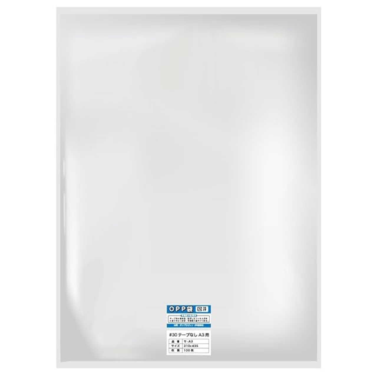 【100枚】OPP袋 A3用テープなし 30ミクロン厚(標準)310x435mm【国産】