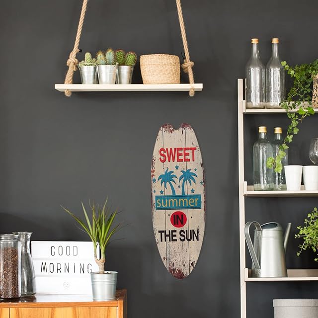 【サーフボードの木板】素敵で新鮮な色、サーフボードの装飾はあなたの家や他の 場所に光沢を追加します。夏の海辺の雰囲気があり、模様のデザインがファッショナブルで美しいです。 ビーチライフを愛する家族、友人、同僚へのプレゼント 。