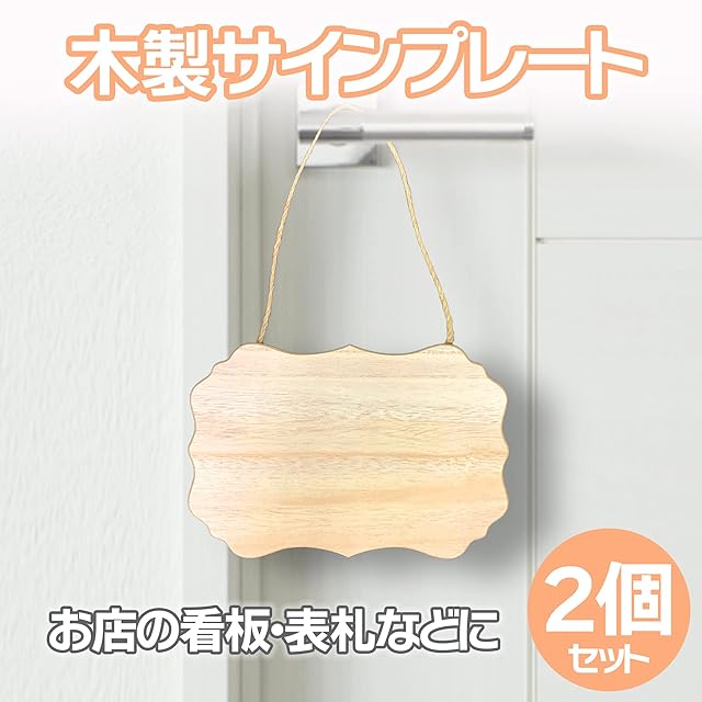 自由に文字を描ける木製サインプレート:ナチュラルな色合いの木製サインプレートのセットです。絵の具やペンキなどで自由に文字を描くことができます。文字を彫ったりするのもよいでしょう。<br><br>自宅用のドアプレートとしても:シンプルなサインプレートなので、様々な用途でお使いいただくことができます。名前などを入れて自宅用のドアプレートとして活用したりするのもよいでしょう。<br><br>カフェや喫茶店の看板としても:営業中やOPEN、CLOSED、Welcomeなどの文字を描いて、カフェや喫茶店の入口のドアに吊り下げる看板として活用したりするのもよいでしょう。<br><br>アイデア次第で様々なアレンジができる:文字などが描かれていない無地のサインプレートなので、アイデア次第で様々なアレンジができます。インテリアや店舗の外観に合わせてオリジナルのサインプレートに仕上げることができます。<br><br>セット内容:2点セット カラー:ナチュラルウッド 材質:木 サイズ:約22.9×15.2cm ※モニターの環境等により、色の見え方に若干差が生じる場合がございます。