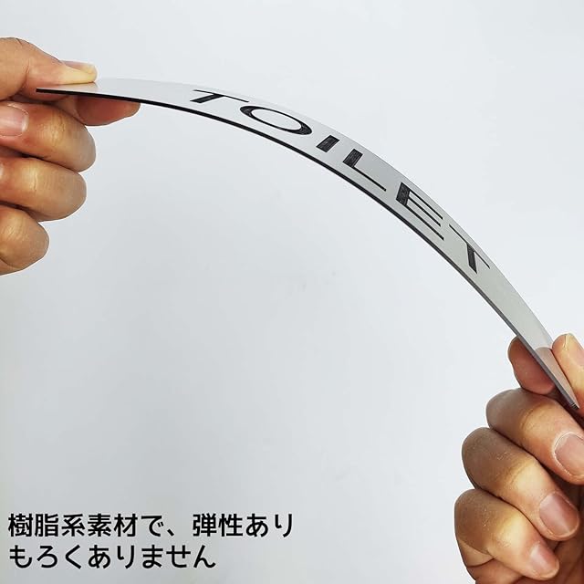 サイズは約21.5cm×5cm、 厚さ約1.3mm、プラスチック製(1枚入り)です。シルバー光沢です。裏面はアクリル系両面テープ付きで、工具不要ですぐに取り付けます。しっかり平面にくっついて、取り外す時も簡単に剥がせるタイプです。曲面、凹凸面の設置はできません。塗り壁、壁紙面の設置はご遠慮ください。