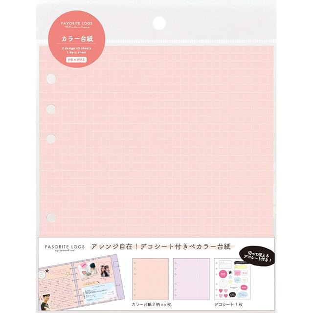 【商品概要】 style:カラー台紙 ピンク: 【サイズ】W148mm×H170mm 【仕様】デコりやすいしっかりした厚手のカラー台紙。方眼罫 【内容】台紙2色×5枚+デコシート1枚 【原産国】日本