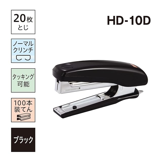 耐久性に優れた国産ホッチキス。カラーはブラックです。