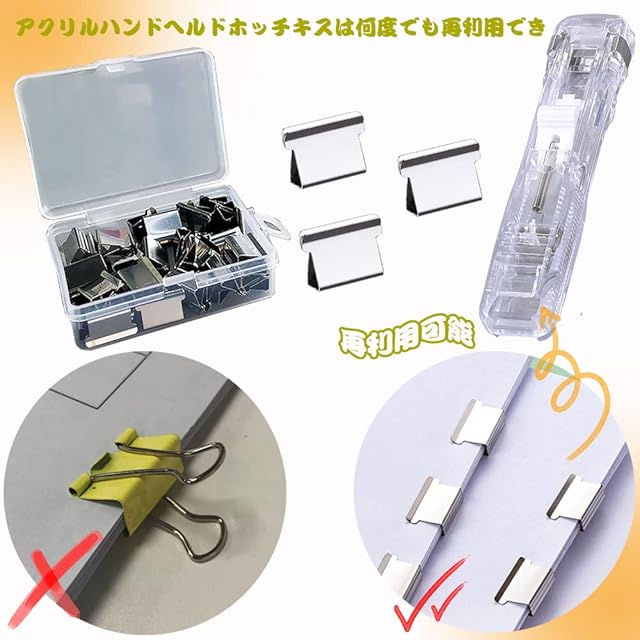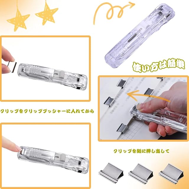 自動クリッププッシャー 1セット 穴をあけないホチキス 透明クリッププッシャー 再利用可能 紙を整理 紙を傷つけない 資料答案用紙の整理 袋の口封じ 使い方は簡単 非破壊製本 事務用品 文房具 クリップ50個 | HiKaRiストア