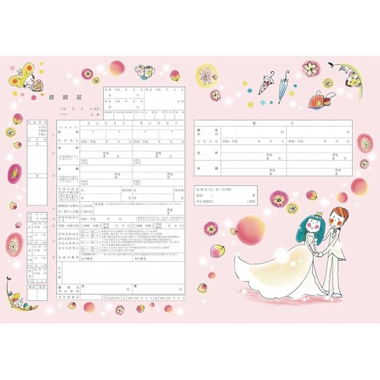 日本全国すべての市区町村役場に対して有効に提出できるイラスト入りの婚姻届です。 3枚1セット(提出用・保存用・予備用)となっており、提出しても書き損じても、手元に残しておけます。 婚姻届の書き方説明書もついているので、安心して記入できます。