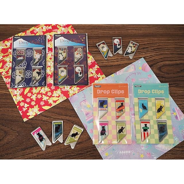 印刷面に、水滴の様な樹脂加工をしたクリップです。 紙を挟むだけでは無く、ブックマークや書類のアクセントにも活躍しそうです。 花札をイメージした猫の絵柄もおしゃれです。 プレゼントや、日本土産にも喜ばれる一品です。