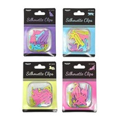 猫のシルエット型のカラフルなクリップです。4色×各3個入りです。紙を挟むだけでは無く、ブックマークや書類のアクセントにも活躍しそうです。 プレゼントにも喜ばれる一品です。 メモ用紙などを4~5枚程度,束ねるのに適しております。