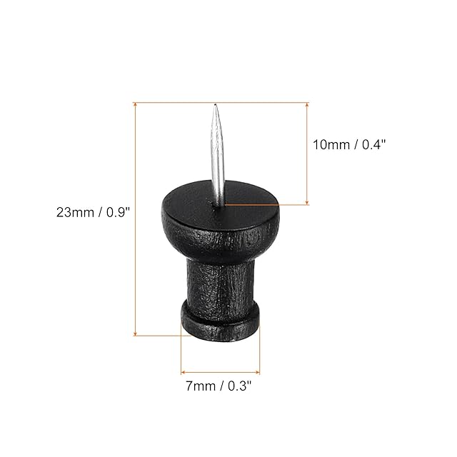 これらの押しピンには複数の機能があり、オフィスの整理、クラフト、アートワーク、マーキング、ホワイトボード、ウォールボード、通知ボード、掲示板、コルクボード、地図、カレンダー、切手、装飾品、ポスター、メモ、写真などに適用されます。<br /><br /><br />仕様:<br /><br />カラー:ブラック<br />素材:木、メタル<br />ピン長さ:10mm<br />ヘッド径:7mm<br />全体長さ:23 mm<br />パッケージコンテンツ:50 x 木製押しピン<br /><br /><br />利点:<br /><br />木とメタル素材で作られて、優れた仕上がり、頑丈で耐久性があり、曲がりや変形が容易ではありません。デスクトップや机の引き出しを整理整頓するのに役立ちます。持ち運びや保管に便利です。<br /><br /><br />使用方法:<br /><br />押しピンは鋭利で挿入しやすく、滑らかで取り外しが簡単です。<br /><br /><br />注意:<br /><br />コンクリート壁には釘を打たないでください。