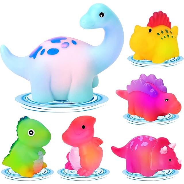 REMOKING お風呂 おもちゃ 恐竜おもちゃ 水遊びおもちゃ シャワー プール おもちゃ ライト カラフルなLED点滅おもちゃ 子供 おもちゃ 6点セット