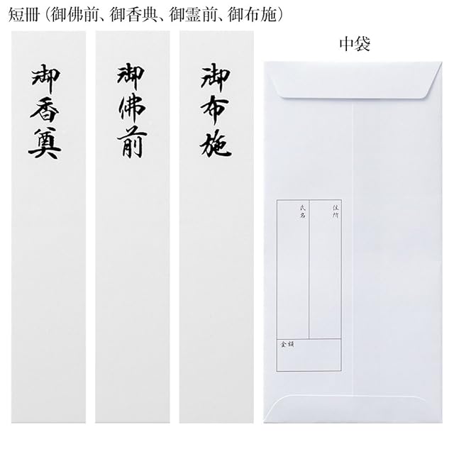 短冊(御佛前、御香典、御霊前、御布施)各1枚付き。