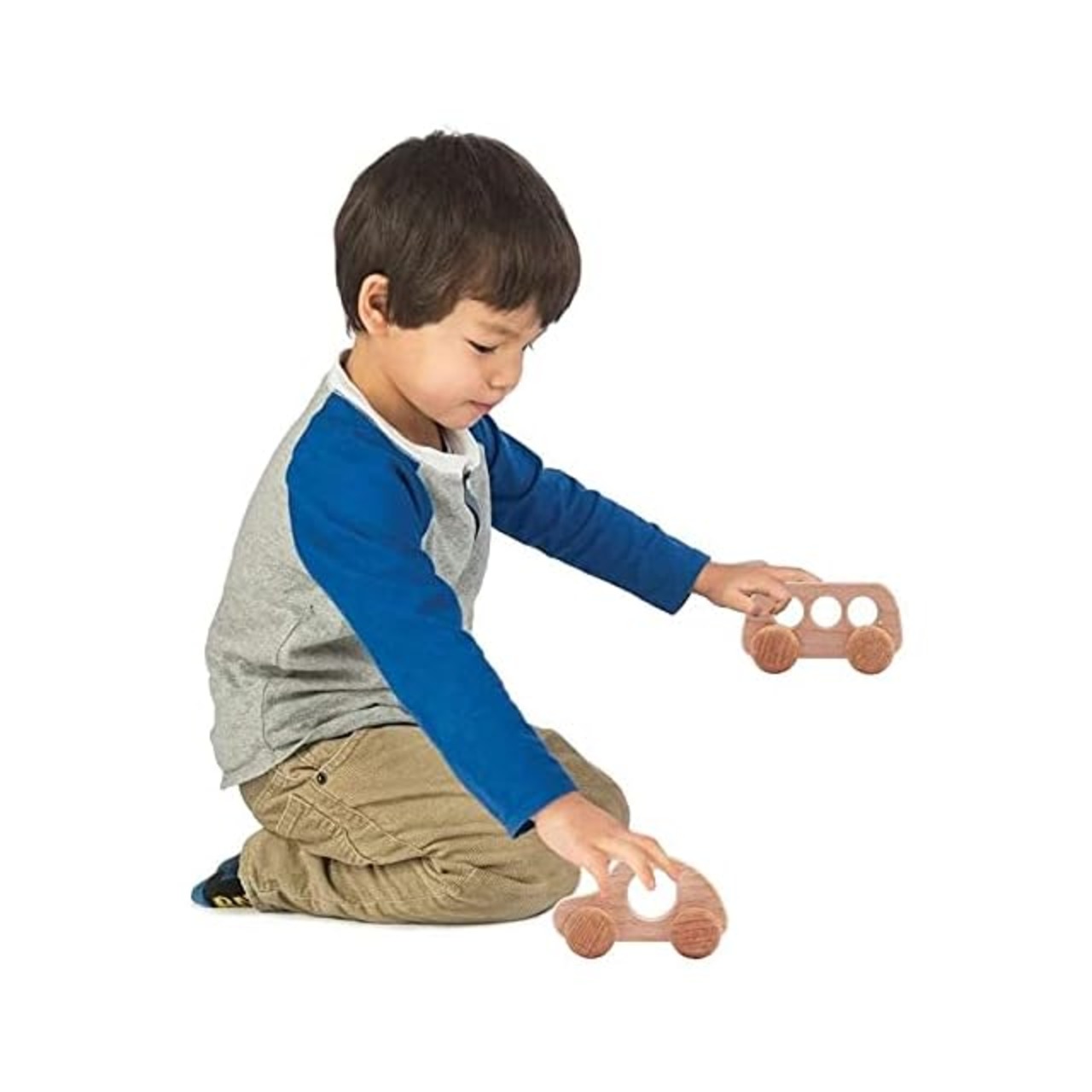 Promise Babe 木製おもちゃ 赤ちゃんのおもちゃ ミニカー バス 2点セット ブナの木 天然木 無塗装 押し車 玩具 出産祝い ギフト 新生児贈り物 プレゼント