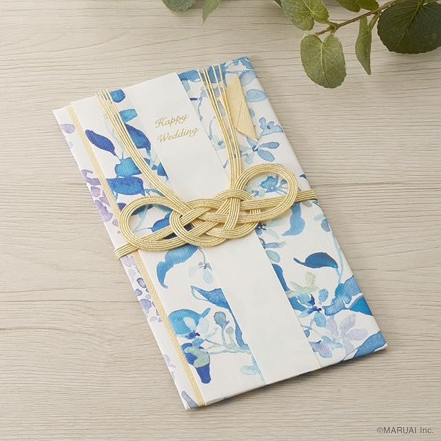 美しい水彩のタッチでブルースターの花束を描いた華やかな金封です。ブルースターの花言葉は"幸福な愛"。