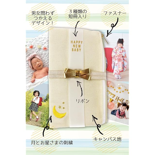 【内容】ポーチ・リボン(平ゴム)・中袋1枚・短冊3種(HAPPY NEW BABY/御祝/ご出産お祝い)/両面シール3枚