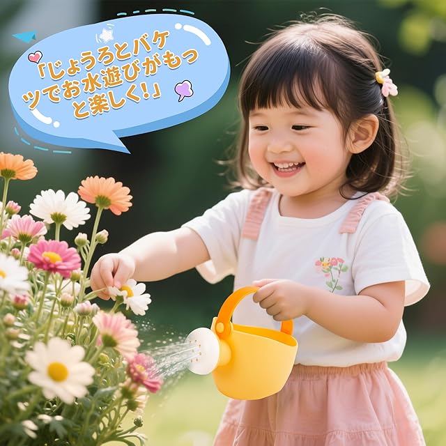 【セット内容】8点セット:ひしゃく、ジョウロ、バケツ、釣竿、漁網、動物ちゃん(3個)。水切りができて便利な収納メッシュバッグ1個付き。