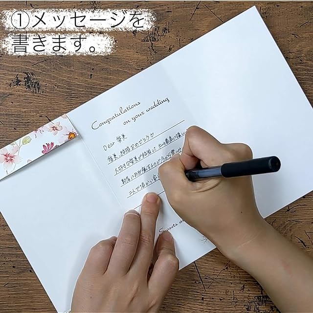特徴:結婚式やパーティ当日、新郎新婦は忙しくてゆっくり話せないから、あなたのお祝いの想いを手書きの文字にのせて伝えます。