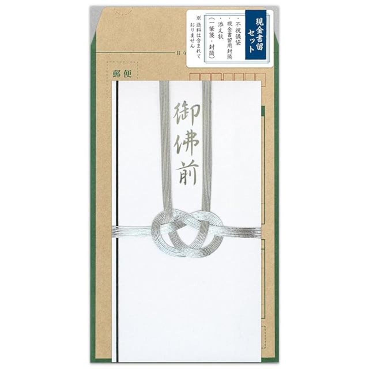 エヌビー社 現金書留セット 御佛前 銀 | 御仏前 不祝儀袋 双銀水引 一筆箋2枚 封筒