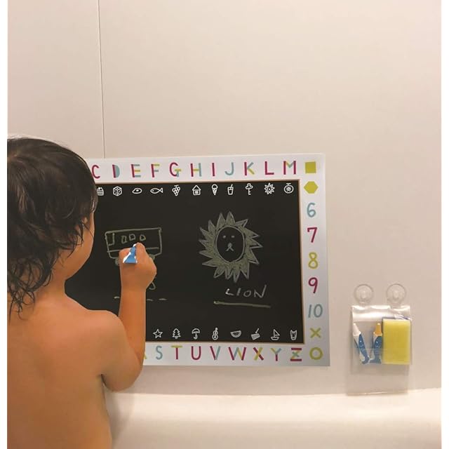 【内容】お絵かきシート / おふろ用キットパス青、赤、緑各1本 / スポンジ / 吸盤付き収納ケース