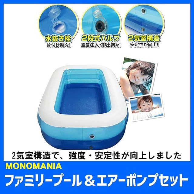 monomania ファミリープール 幅150cm 奥行100cm 高さ42cm 駐車場 ガレージ 庭先 (エアーポンプ付き)