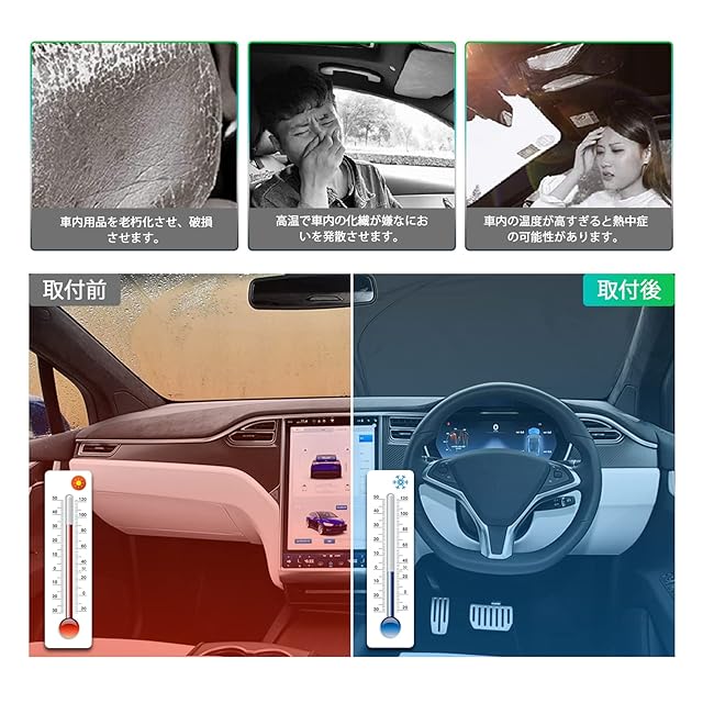 【多機能】高品質のナイロン布をチタン銀コーティング技術で配合し、高分子構造保護により、夏の日差しと紫外線の侵入を遮断し、耐え難い高温を遮断し、日焼けによる車内の高温を減らすことができます。また、冬は冷気の侵入を防ぎ、車内の温度を保ち、保温効果も優れています。夏であろうと、冬であろうと、車内でゆっくり休憩することができます。また、車内の設備の老朽化と破損を防止し、愛車を保護します。