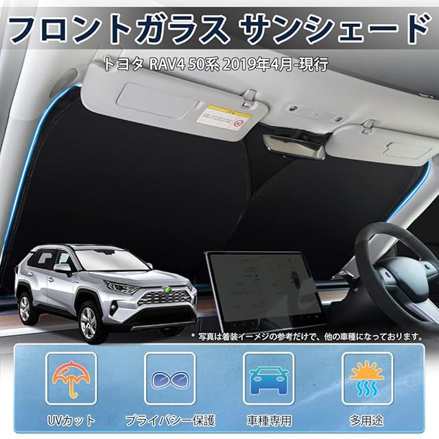 LIMSTYLE トヨタ RAV4 50系 フロントガラス用 サンシェード 日よけ スポーティ タイプ 2019年~ 5代目 車種専用 サンシェードカーテン UVカット しなやか 車保護 カスタムパーツ インテリア 内装パーツ ドット柄 取付簡単 収納袋付 メーカー直営 | HiKaRiストア