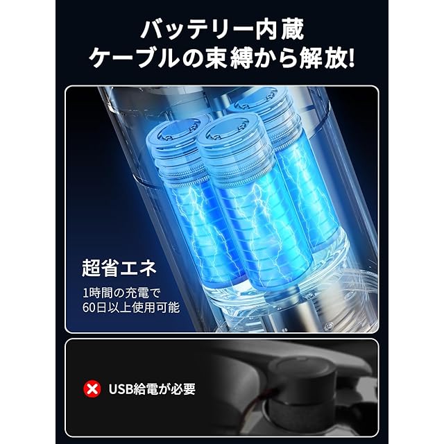 ✅【F26を選ぶ理由②:コードレス設計】省エネ型バッテリーが内蔵されており、1時間の充電で約60日間持続し、どこにでも簡単に設置できます。Type-CとUSBのデュアルソケット設計で、スマホとF26を同時に充電できます。(充電規格:5V/1A)