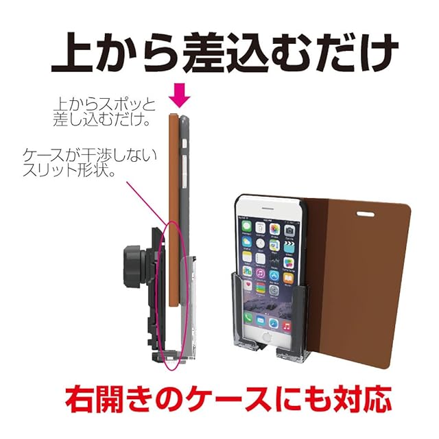 【商品概要】 style:吸盤貼付け: 大きな手帳型ケースからケースレスまで収納できるホルダー 手帳型ケースを開いたまま収納可能(開き角度調整ホルダーが付属) 取付け自在なゲル付き吸盤を採用(補助板が付属)